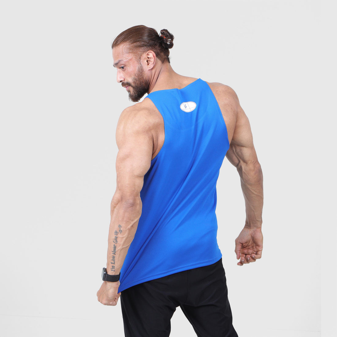 Elevate your workout game with our Blue Stretchable Mesh Gym Tank Top. Engineered from breathable...